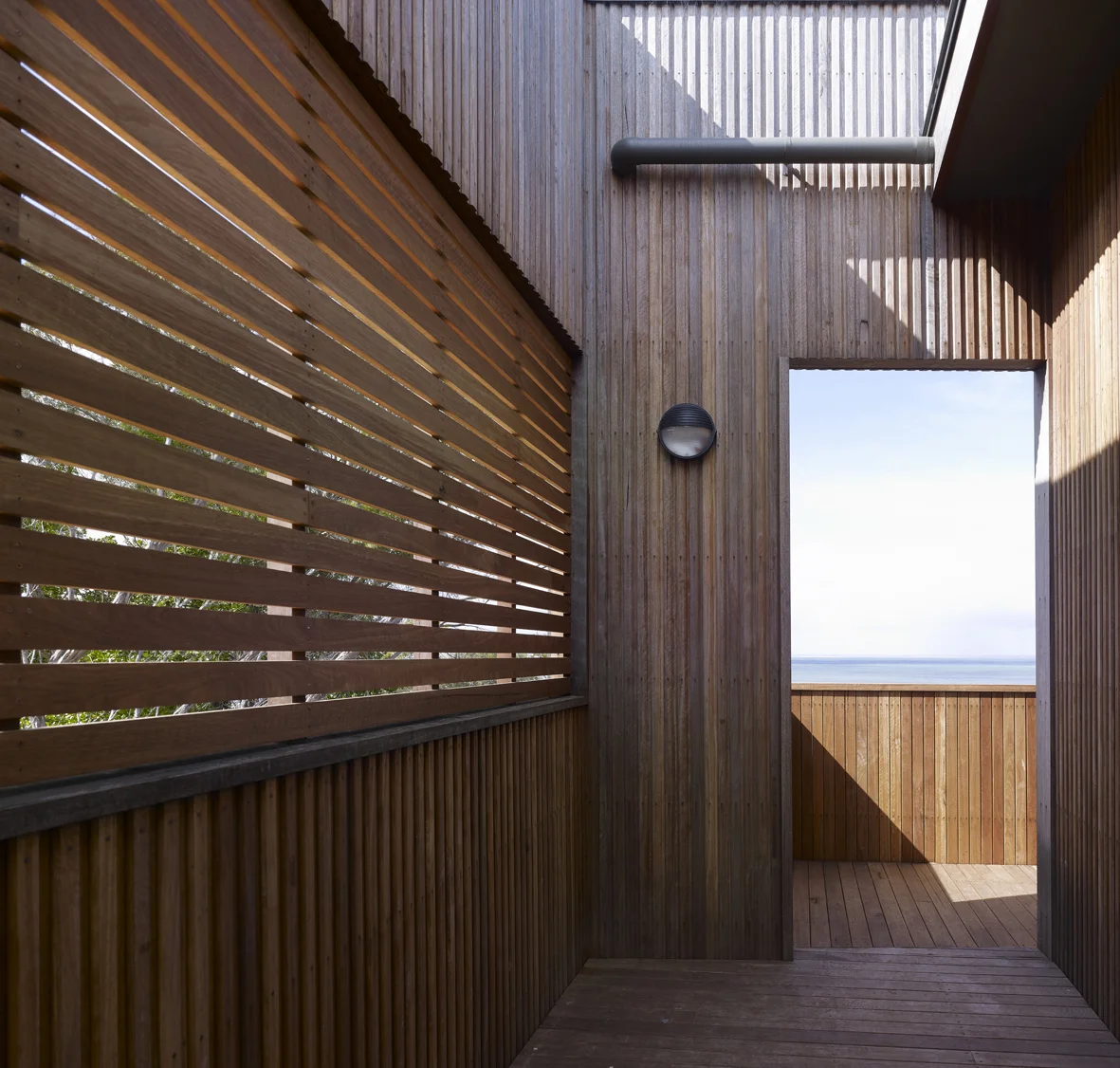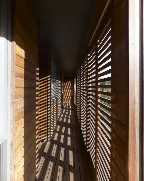 Built with durable materials that will fade to grey when aged, the house will gradually blend in to the natural tea-tree backdrop and become a part of its landscape.